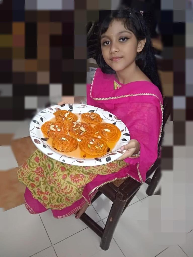 We had 5 minutes to select the ingredients and 30 minutes to make the dish. My dish – Besan and Khajur Halwa with coconut, saffron and mint flavors served with honey infused Rabri got second place.